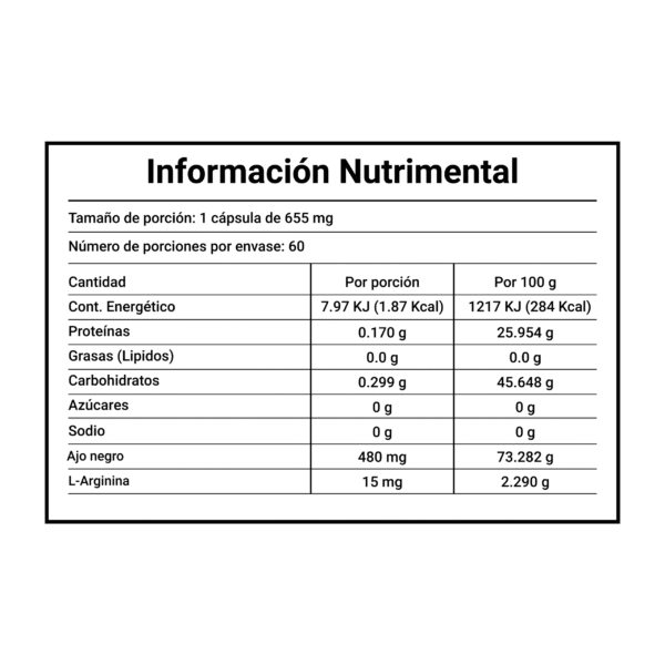 Producto que combina las propiedades del ajo negro con el aminoácido L-arginina. Presentado en prácticas cápsulas de 500 mg, su fórmula está diseñada para integrarse fácilmente en tu rutina. Una opción que concentra ingredientes específicos para apoyar tu equilibrio diario.