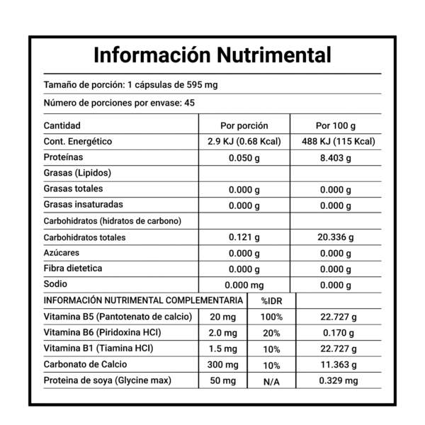 Su fórmula reúne vitaminas clave del complejo B (B1, B6 y B5 proveniente del pantotenato de calcio), complementadas con carbonato de calcio. Cada cápsula de 500 mg está pensada para integrarse a una rutina activa, ofreciendo una fuente de estos nutrientes.