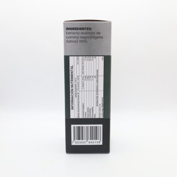 Eleva tu bienestar con el milenario Aceite de Comino Negro. Este suplemento es una fuente natural extraordinariamente rica en nutrientes esenciales, incluyendo vitaminas (A, B, E y C), minerales y ácidos grasos Omega 3, 6 y 9. Su contenido natural de Timoquinona lo convierte en un aliado ideal para quienes buscan una protección antioxidante integral.