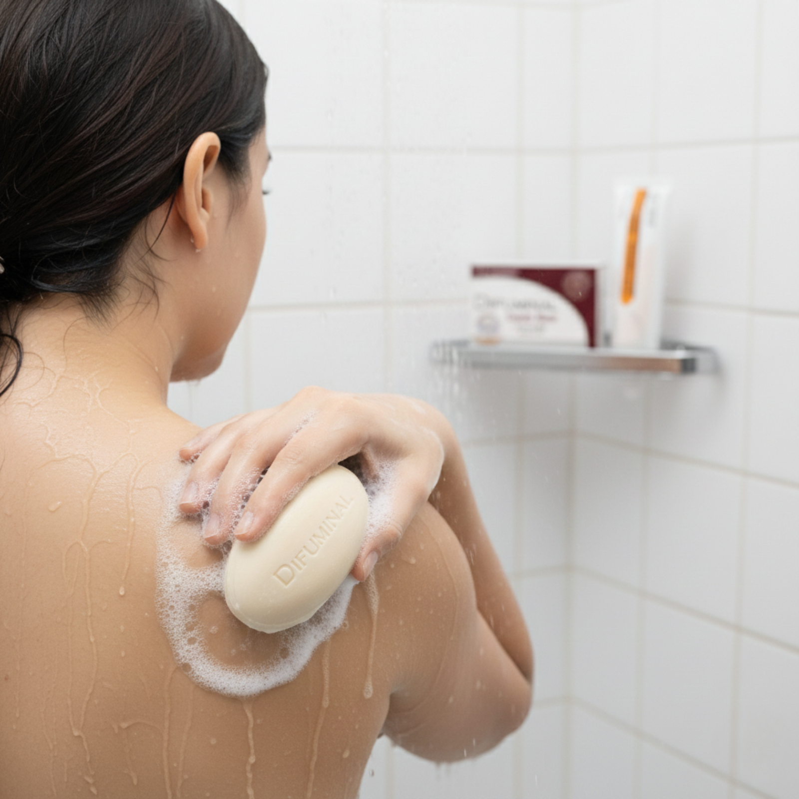 Se sugiere frotar suavemente sobre la piel húmeda hasta formar espuma y enjuagar con agua.