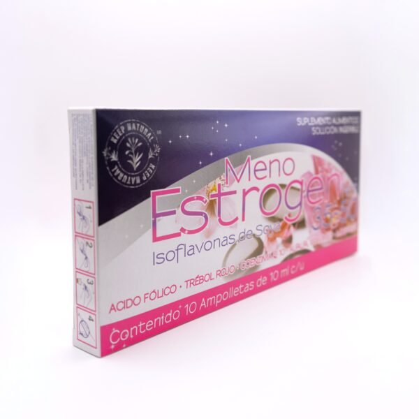 Meno-Estrogen FEM 35-50 combina vitaminas, minerales, antioxidantes e ingredientes naturales como isoflavonas de soya, trébol rojo, sacha inchi y salvia, en una fórmula líquida práctica y moderna. Diseñada para acompañar el bienestar y la vitalidad femenina, ofrece un equilibrio natural que se disfruta cada día al incorporar una ampolleta a tu bebida favorita.