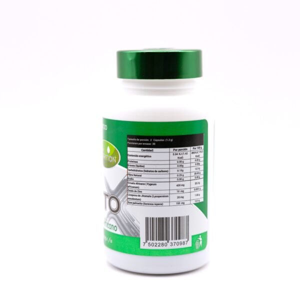Ciruelo africano, saw palmetto, licopeno de jitomate, óxido de zinc.