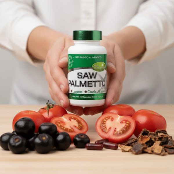 Ciruelo africano, saw palmetto, licopeno de jitomate, óxido de zinc.